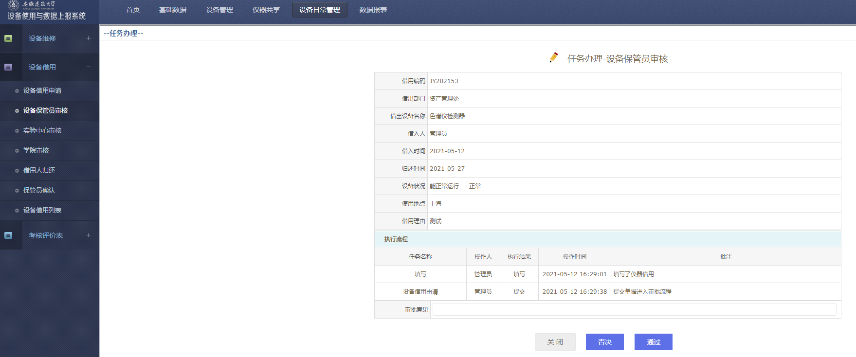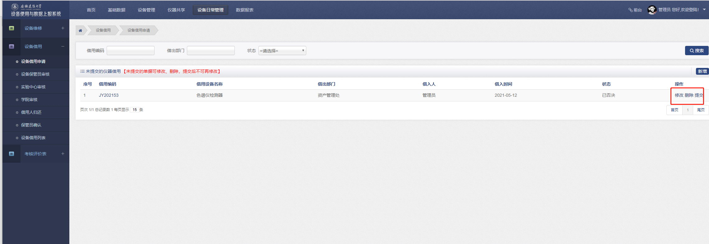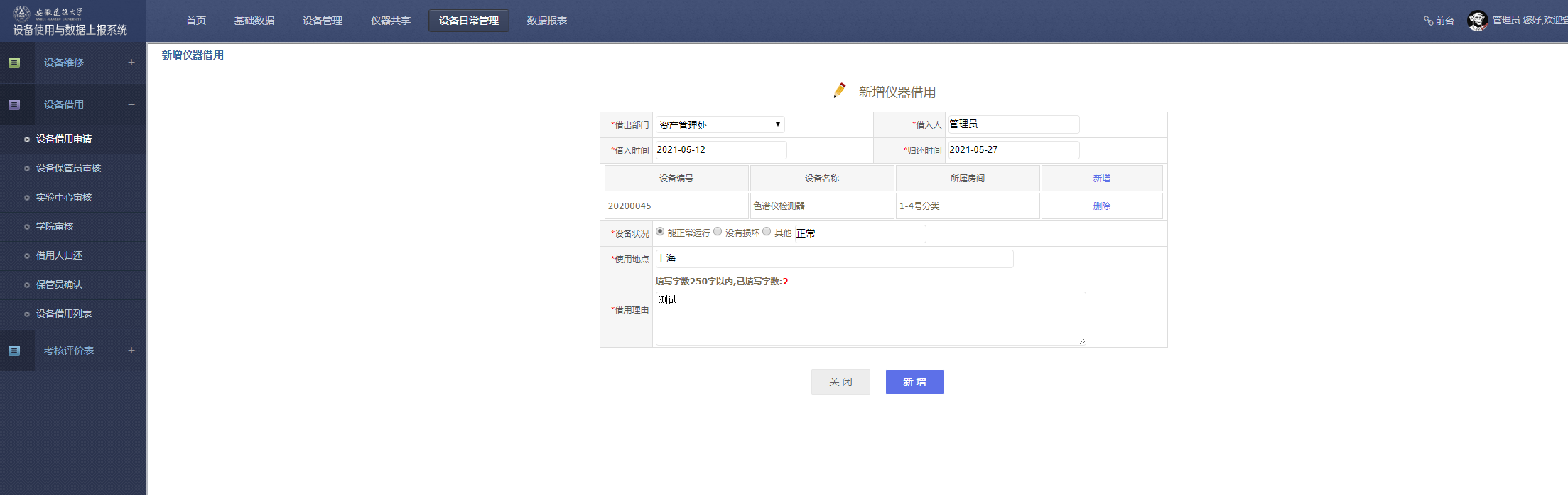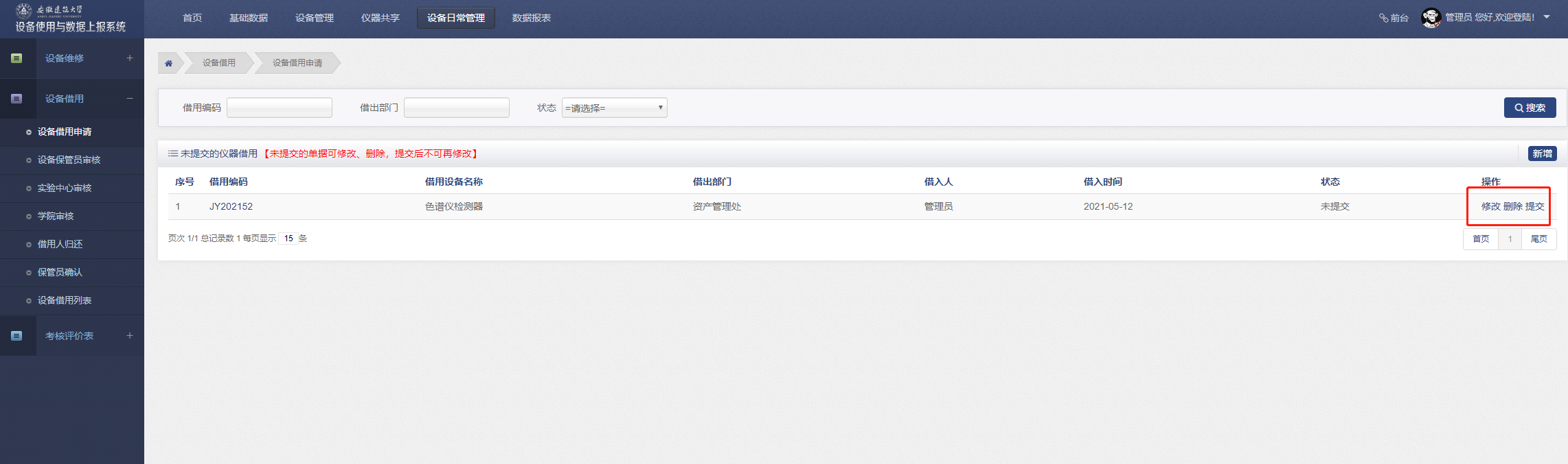 (提交借用的设备必须有保管员,若无,则无法进行设备保管员审核