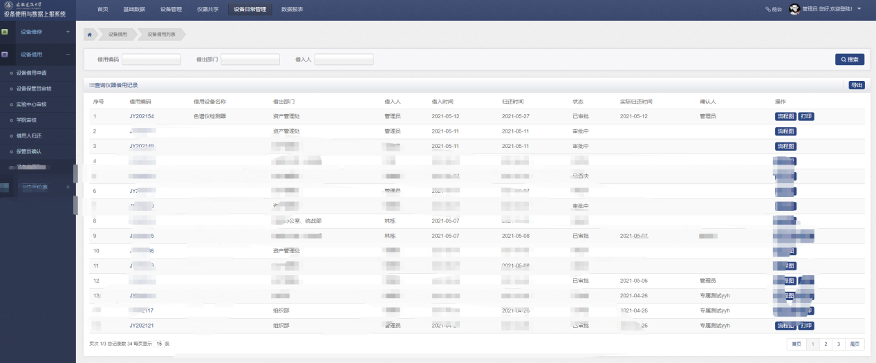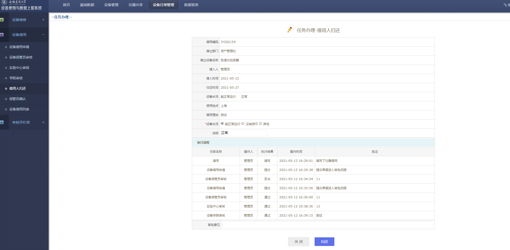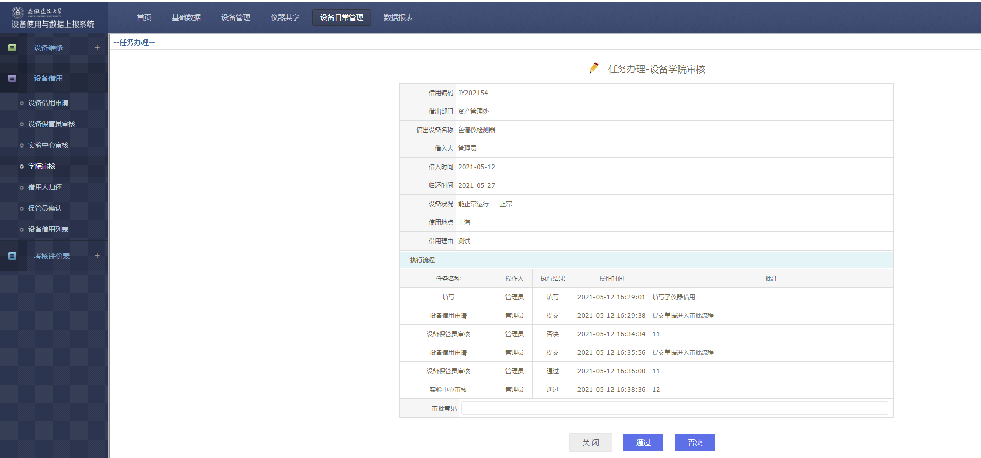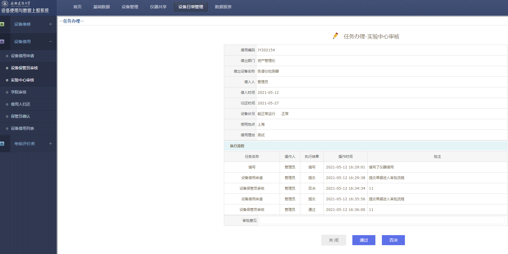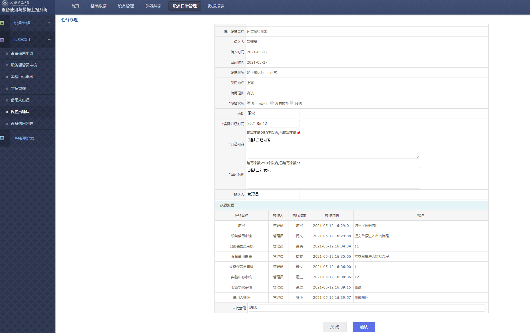 (提交借用的设备必须有保管员,若无,则无法进行设备保管员审核