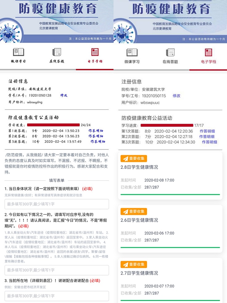 学院全力配合上级做好疫情防控工作,第一环节是需要学生们的高度配合。土木学子在疫情防控期间,也充分发挥了“土木人”的担当精神和责任意识,行动上与学院保持高度一致,配合学院工作,如实上报疫情防控相关个人信息等,能够做到日日报,人人报,为打赢这场疫情攻坚战最作基础的努力。