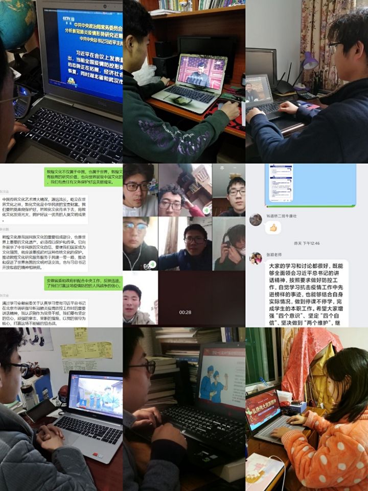 本网讯 一个党员就是一面旗帜,一个支部就是一个堡垒。党委领导,支部引领,党员率先。在疫情防控期间,土木学院各学生党支部,在学校和学院党委的统一领导下,积极开展系列党日活动,强化党员担当意识。学生支部215名党员初心不移,同心战“疫”,充分发挥党组织战斗堡垒和党员先锋模范作用。 用心·认真学习强觉悟 土木学院道路桥梁与渡河工程学生党支部、土木工程学生第一、二党支部等支部开展“同心战疫,共克时艰”线上学习讨论主题党日活动。在支部书记的带领下,大家认真学习,进一步提高了思想觉悟和主动担当意识。学习主要包括三个方面:一是学习党中央有关疫情防控的决策部署和相关文件精神,主要学习了《习近平总书记在中央政治局常委会会议研究应对新型冠状病毒肺炎疫情工作时的讲话》、《习近平总书记在统筹推进新冠肺炎疫情防控和经济社会发展工作部署会议上的讲话》等系列重要讲话。通过学习,大家看到了党中央对疫情的高度重视,对疫情形式的精准判断和及时部署,感受到了党中央战胜疫情的决心。二是学习抗疫一线优秀党员先进事迹,党员们通过学习平台认真学习了钟南山、李兰娟等党员的抗疫事迹,对他们不惧挑战、勇挑重担、逆行而上的精神感到钦佩,更加明确了共产党员身上的责任和使命。三是专项学习疫情防控知识。通过安徽省网络课程学习中心——疫情防控专题学习,大家对疫情防控有了更深的了解,更加能够帮助自己和他人做到科学、有效地防控疫情。