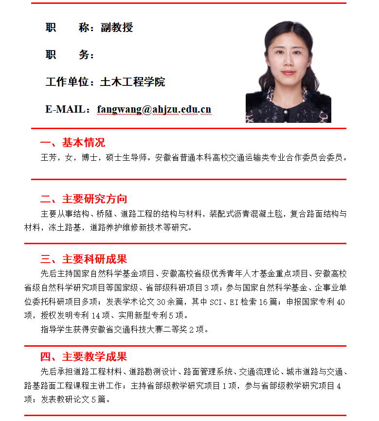 王芳 副教授