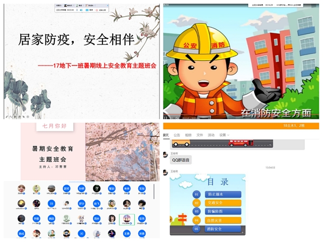 辅导员们重点围绕疫情防控常态化“国家安全”、“网络安全”、“交通安全”、“消防安全”、“饮食卫生”等夏季易发的问题对学生进行暑假期间的安全教育,提高了学生们的安全意识以及疫情防控常态化下的责任意识。同时,结合当前防汛工作形势,加强了汛期防洪防灾教育,使学生们学会一些自救的方法,让学生在遇到危险时能采取一定的措施,保护自己,同时也真正把安全和责任意识落到实处。此外,辅导员还与同学们探讨了暑期生活的计划安排,并就考研、就业、竞赛等同学们关心的问题提出了建议和看法。