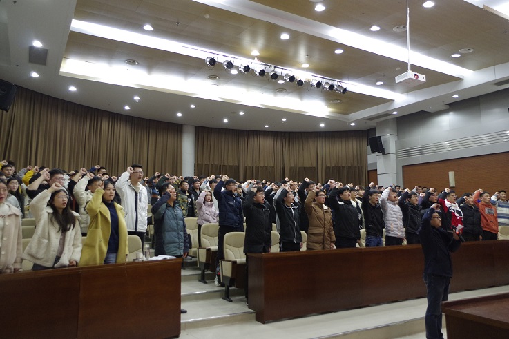 随后,由学院党委副书记胡燕青领誓,全体党员庄严宣誓,许下自己的承诺。誓言声声,饱含了党员们的自豪感与荣誉感、责任感与使命感,也坚定了为祖国做贡献为人民谋福利的决心与信心。(图/文:张颖 余凌翔 李伟峰 杨振宇 李承彦;审核:李大华)