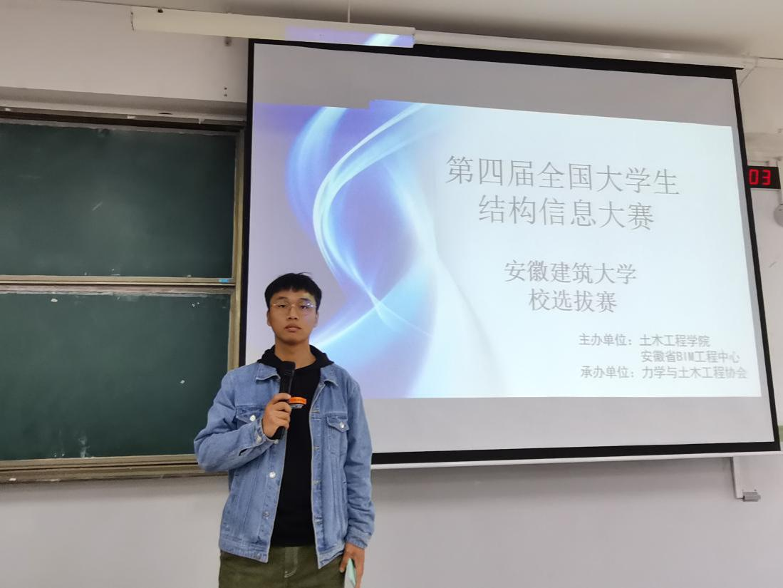 本网讯  11月22日下午,土木学院力学与土木工程协会在东辅楼2101教室举办了第四届全国大学生结构信息大赛校内选拔赛。活动旨在推广大学生结构信息知识,选拔优秀队伍代表我校参加全国比赛。