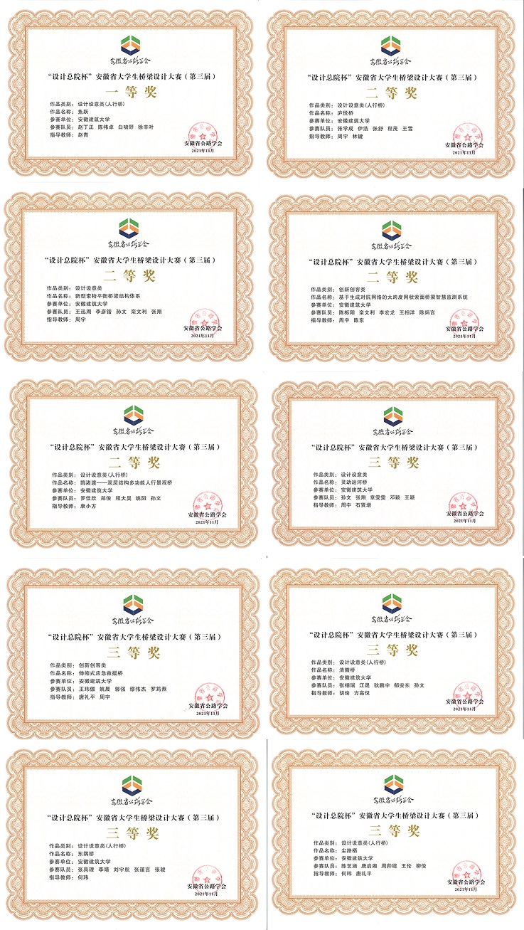 | 【学科专业竞赛】土木学子喜获第三届安徽省大学生桥梁设计大赛10项奖项 |