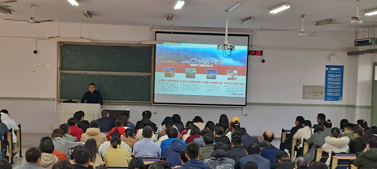 本网讯 为全面贯彻落实十九届六中全会精神,12月23日,副校长蔡国军为土木学院、图书馆、研工部等部门师生党员宣讲党的十九届六中全会精神。