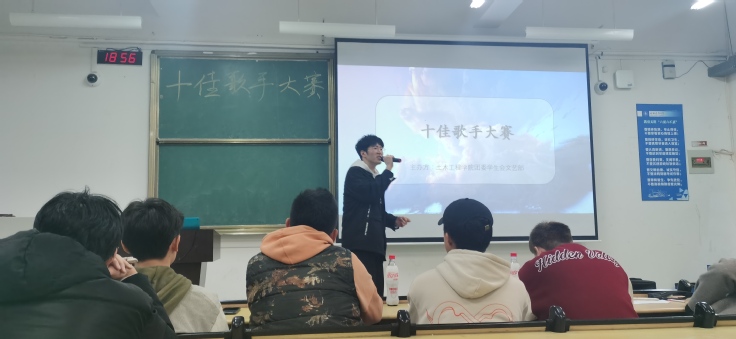 本网讯  常态化疫情防控下,为进一步丰富同学们的业余生活,提供展示才艺的平台,展现大学生饱满的精神状态和昂扬的青春风貌,3月28日晚,土木学院在逸夫楼5201教室举办以歌为浆,逐梦远航十佳歌手大赛。