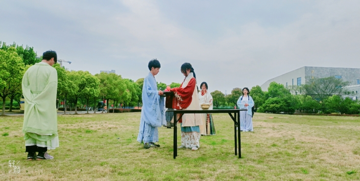 一声“开始”在耳边响起,庄重的仪式有条不紊地进行着,在这复杂的叩、拜、揖礼等等一系列礼仪中,无不透漏着古代典礼仪式的严肃感和重要性,带领大家对切身的感受了解传统文化。随后,成员们组织了一场别开生面的飞花令游戏,同学们在游戏中一展才华。在欢声笑语中下一个节目登场了,只见一袭红衣翩翩起舞吸引了全场的目光。有了舞蹈又怎么能缺少了音乐,在悠扬的民乐中第一环节落下帷幕。