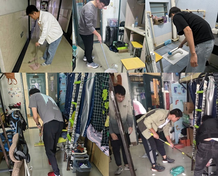 在明确各自责任区域后,党员及入党积极分子发扬不怕脏、不怕累的工作精神,对打扫区域进行彻底清扫整理,同时带动室友及其他同学积极认真地参与进来。最终,在大家的共同努力下,宿舍焕然一新,干净整洁。