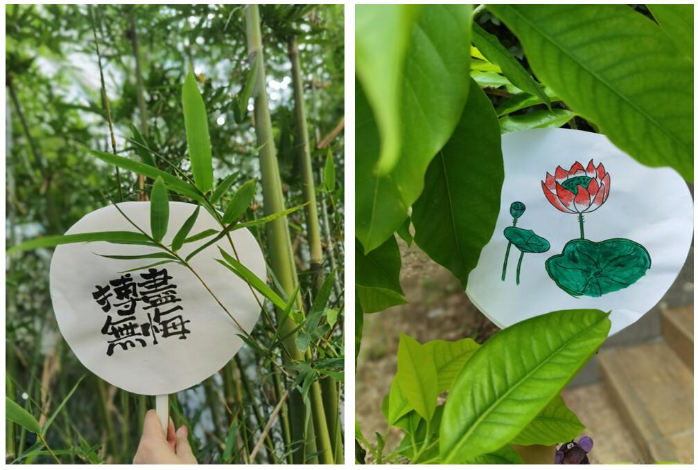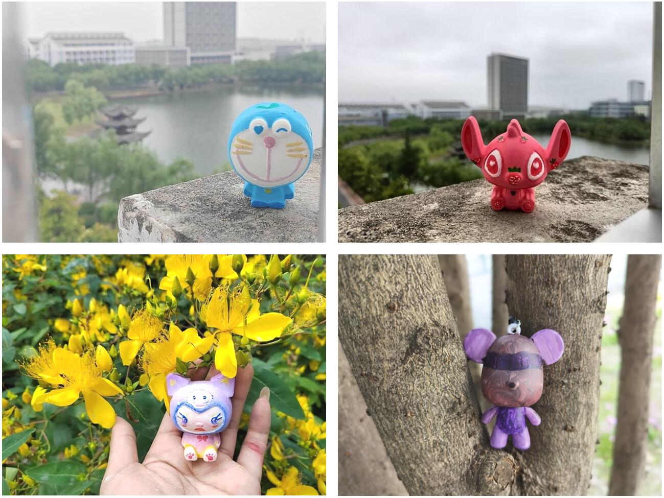 活动时间正值中午,烈日也无法阻挡同学们的热情。同学们在有序排队领取石膏娃娃、扇面、颜料后,纷纷开启了“创作之旅”。小小的画笔创作出了大家内心小小的向往,同学们一起在忙碌的学习生活中寻找童年快乐积极向上的力量22土木二班的马祥同学制作了属于自己的独特熊挂件,这个挂件将一直陪伴在他的身边成为专属于自己的青春记忆。22环设詹瑞涵同学设计了一款夏天风格的挂件,摆在校园里的草地上,也别具一番风味。21土木黄锐同学创作了一款色彩丰富的扇子,在炎炎夏日中获得属于自己的一把青春之扇。活动最后收集到了60多组与校园景色相结合的作品照片,大家一起在初夏里享受这段惬意美好的时光