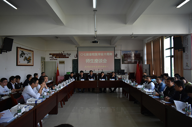 蔡国军代表学校对2007级安全工程专业校友毕业十周年回母校联谊表示热烈欢迎!对校友们毕业十年从适应社会到成为行业精英表示祝贺!对校友们心系建大、情牵母校的桑梓情怀表示敬意!他向校友介绍学校近年来发展情况和取得成绩,特别是土木工程专业博士点授予权突破。他指出学校各项成绩的取得离不开广大校友的支持和帮助,学校安全工程专业发展壮大同样需要校友们关心支持。希望校友们与学校、老师加强联系,多交流,多合作,常回母校看看。祝校友们身体健康,事业更上一层楼。