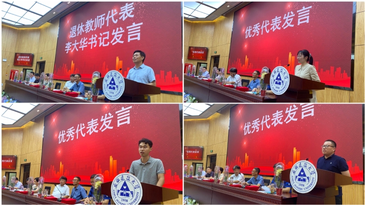 新进教师代表洪秋阳发言,他回顾了入职建大一年来的收获与感受,从感恩、责任以及决心三个方面表达了自己教学科研工作体会。