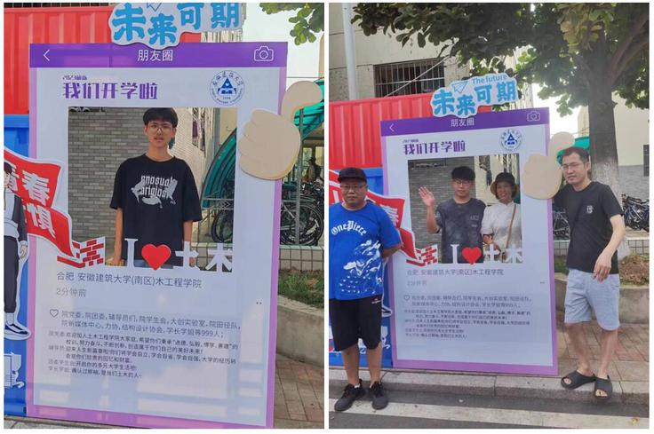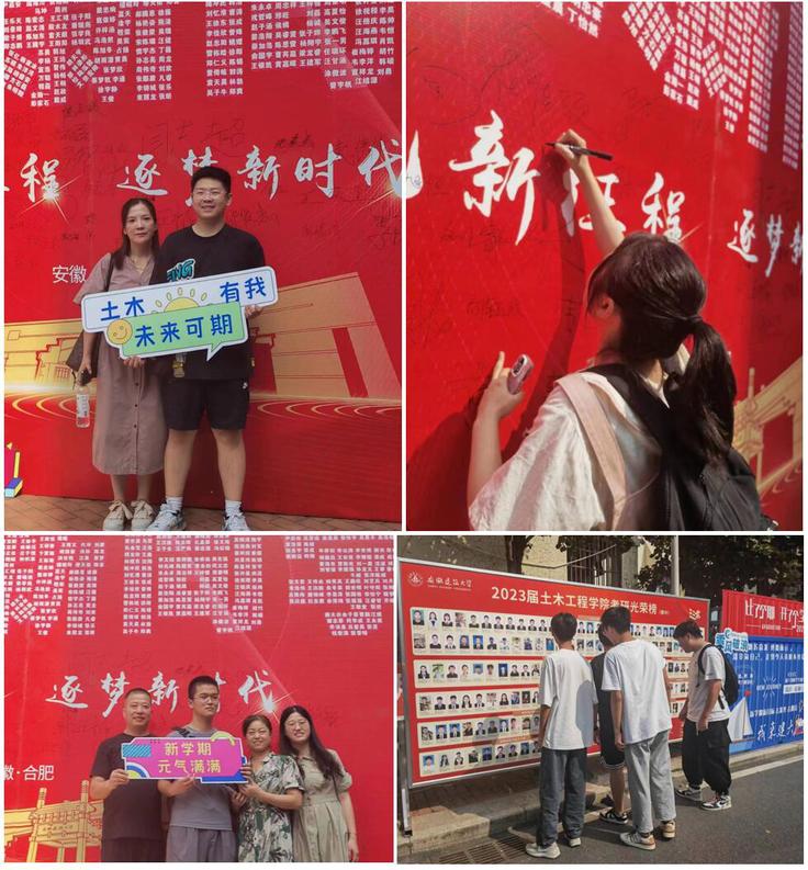 土木有你 未来可期 学院领导来到迎新点、走进宿舍,迎接新生,看望迎新工作人员和学生志愿者,询问实时报到数据,要求现场工作人员为新生提供优质服务,及时解决新生的困难。院领导与新生热情交谈,给出建议和指导,勉励大家争做担纲民族复兴大任的明日栋梁。23级智能建造专业新生金祉彤说:“我在报到展板上了解到学院的发展和取得的丰硕成果,看到了考研光荣榜上的优秀学长学姐,很激动成为土木学院大家庭的一员,感谢相信我也可以在这里遇到更美好的自己。”