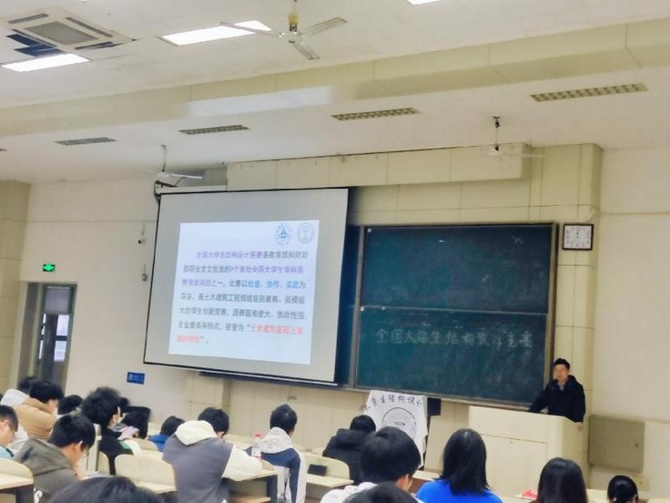 本网讯 11月15日,土木学院在徽学楼1611教室举行了一场精彩的大学生结构竞赛宣讲会。本次宣讲会面对2022级、2023级土木工程、水利水电工程、智能建造专业学生,会上详细介绍了全国大学生结构设计竞赛的重要性和参赛经验,从而激发年轻学子对结构设计的兴趣和热情。