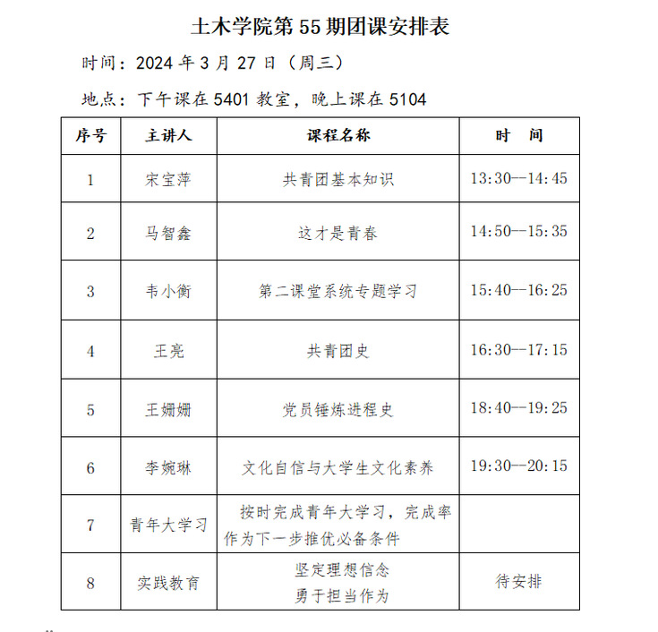 关于举办土木学院2023-2024学年第二学期团课暨青马工程培训班的通知