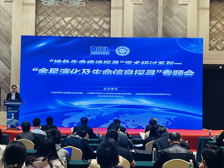 深空探测实验室深空科学研究院、中国科学技术大学地球和空间科学学院汪毓明院长主持会议开幕式。汪毓明发表了热情洋溢的开幕词,他强调了未来地外生命探测任务的科学目标和对我国未来行星探测工程的重要意义。多位知名科学家分别就“金星主要科学问题与生命痕迹探寻”、“基于生命痕迹搜寻的金星探测设想”等议题发表了精彩的演讲。他们分享了最新的研究成果,包括如何利用新的技术手段来寻找和识别地外生命的可能迹象。