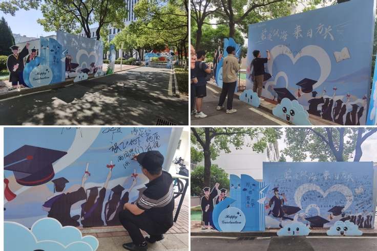 同学们忙碌而有序地整理着宿舍,打包好行装,回过头再看一眼空空的床铺和书桌,恍然间想起四年前推门而入的那一瞬间。四年时光,电影般闪过,有欢声笑语,有熬夜奋战。如今带着万分不舍启程,而宿舍留在原地,迎接新一批学生,一如当年。 青葱岁月过 归来仍少年 同学们在夏天相遇,又在夏天告别。镜头里定格的笑脸,伴着今夏的蝉鸣,化作“青春”的意象,写入人生的下一章节。