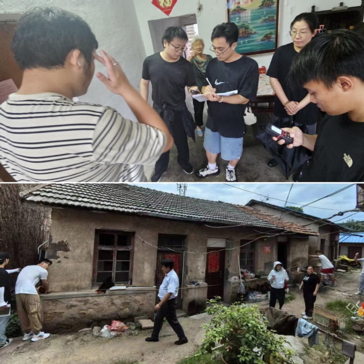 团队深入农户,对当地老旧房屋进行了全面、细致的检查,运用检测设备,对房屋结构、地基、墙体等关键部位进行检测,并在后续会为每一户居民提供专业的危房鉴定报告。吴德义结合实际情况为团队成员讲解房屋鉴定知识。他们穿梭于楼栋之间,用测量尺度量着安全的距离,用数据分析勾勒出改造的蓝图。在这片充满历史韵味的土地上,他们不仅是在鉴定房屋的安全,更是在为居民的幸福生活编织着希望的网。
