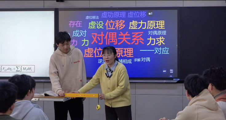 站稳三尺讲台,坚守育人初心。戴云彤老师一直从事本科生和研究生的教学工作,同时也积极支持学校留学生教学工作,从2021年起,为每届土木工程硕士留学生讲授《Advanced Structural Mechanics》全英文课程。在教学过程中,戴云彤老师秉承“学以致用、以用促学”的教学理念,坚持教育的核心是爱与理解。无论是课堂上还是课堂下,戴云彤老师都和学生保持着良性的交流与互动。虽然主讲课程多为专业基础课,授课对象多为大一、大二的学生,但经常有已经结课的大三、大四学生前来询问力学问题,也有学生前来探讨升学与就业选择等问题,她都会尽其所能为学生提供指导和帮助。
