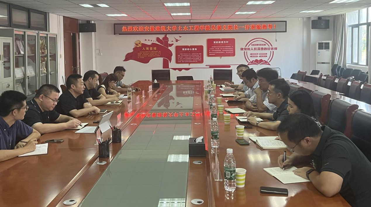 本网讯 为落实学校专业结构调整优化的要求,土木工程学院结合自身办学能力、师资情况和经济社会发展需求认真调研,交流研判增设服务安徽省十大新兴产业本科专业的必要性。8月6日,由院长吴德义率队的土木工程学院一行前往合肥大学城市建设与交通学院,就智慧交通与智慧建造专业建设与发展进行了深入交流与探讨。合肥大学城市建设与交通学院院长华建兵、副院长刘伟,我院副院长陈东、施国栋,双方系主任、实验室主任、专业负责人及骨干教师参加了会议。