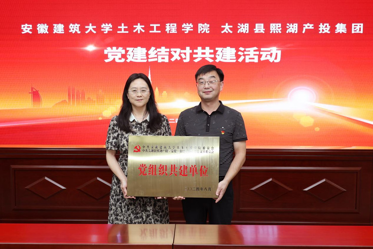 28日下午,土木学院一行来到太湖县发展投资集团有限公司,双方举行产学研合作交流暨党建结对共建协议签约仪式,太湖县委组织部常务副部长潘茂仁主持会议。座谈会上,县发投集团董事长汪助辉、副总经理陈欢分别对集团的总体战略、业务布局以及党建工作的特色亮点作了介绍。太湖县委常委、组织部长左小斌在致辞中感谢了土木学院多年来对太湖县经济社会发展的支持,他要求县发投集团要珍惜这次党建共建机会,用好平台、主动对接,加强与土木学院的交流合作,力争在技术攻关和科研成果转化上取得更多突破,并希望土木学院能够在与县委组织部共建“太湖县乡村振兴博士服务站”的基础上,继续提供人才支撑,与太湖县更多的企事业单位建立更宽领域的合作。随后,王媛对太湖县长期以来对学院工作的支持与帮助表示衷心的感谢,她回顾了近年来学院与太湖县党政部门和企业单位的合作历程及取得的一系列标志性成果,并表示将继续发挥学院的学科和人才优势,为太湖县的乡村振兴提供智力支持和技术保障,把党建工作的成效转化为推动地方经济发展的实际行动。签约仪式上,土木工程学院党委和太湖县熙湖产投(发投)集团有限公司党总支,建筑工程系党支部、安徽省BIM工程中心党支部与太湖县熙湖产投(发投)集团有限公司本部党支部分别签订了党建结对共建协议。