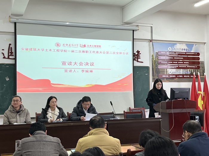 本网讯  19日下午,土木工程学院一届二次教职工代表大会在徽匠楼 2306 会议室隆重召开,学院领导、全体正式代表以及列席代表齐聚一堂。会议由学院党委书记王媛主持。