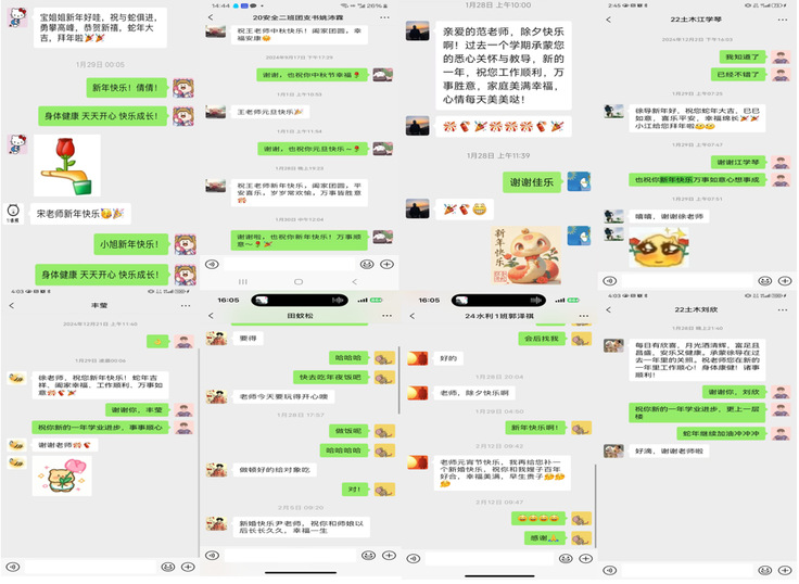 新春佳节之际,学院号召同学们给自己的老师长辈送去新年祝福。辞旧迎新之时,一句句满含尊敬与感恩的话语,通过电波跨越距离,传递着同学们师长们的深情厚意。