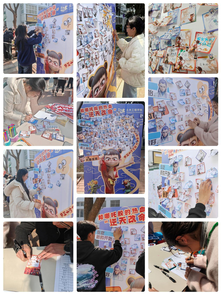 本网讯 扶摇天地志昂扬,脚踏火轮映朝阳。为激发同学的学习热情,帮助学生树立明确的学习目标,培养良好的生活习惯。3月11日中午,土木学院易班工作站在南食堂门口举办“开学‘吒’到 ‘易’启新程”主题活动,激励学生像哪吒一样勇敢逐梦,以昂扬斗志开启新学期,收获成长。