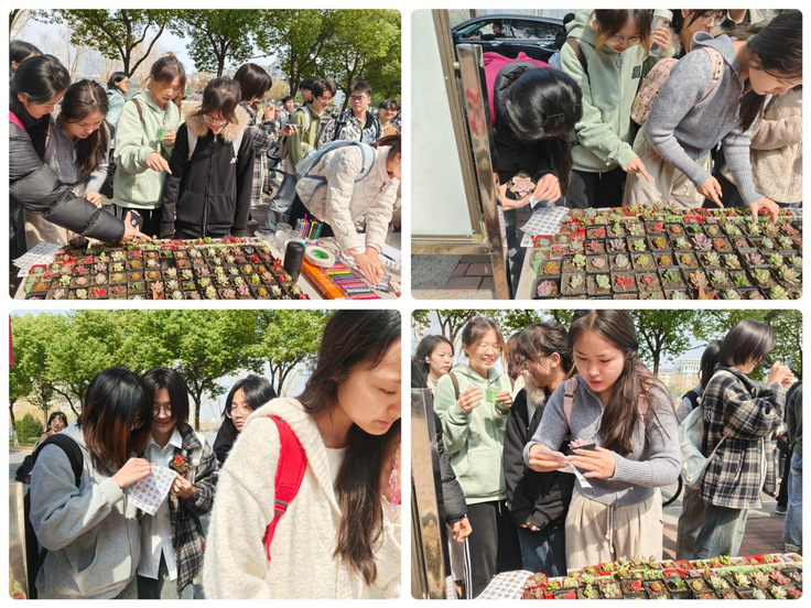 活动以哪吒故事中的“七色宝莲”为灵感,设置多肉植物认养专区。鼓励学生通过认养并细心照料多肉,培养耐心与责任感,逐步养成良好的生活习惯。七彩多肉分别对应“笃学”“坚韧”“创新”等品质,学生挑选代表自身成长目标的多肉,贴上“吒”儿贴纸。“养护多肉就像打磨专业技能,需要耐心和恒心。”2023级学生陈同学捧着象征“专注”的蓝色多肉表示。
