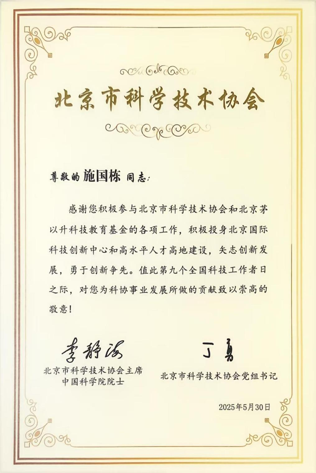 本网讯 近日,土木学院副院长施国栋收到北京市科学技术协会和北京茅以升科技教育基金会感谢信。感谢信指出施国栋同志积极参与北京市科学技术协会和北京茅以升科技教育基金的各项工作,积极投身北京国际科技创新中心和高水平人才高地建设,失志创新发展,勇于创新争先。值此第九个全国科技工作者日之际,对其为科协事业发展所做的贡献致以崇高的敬意!