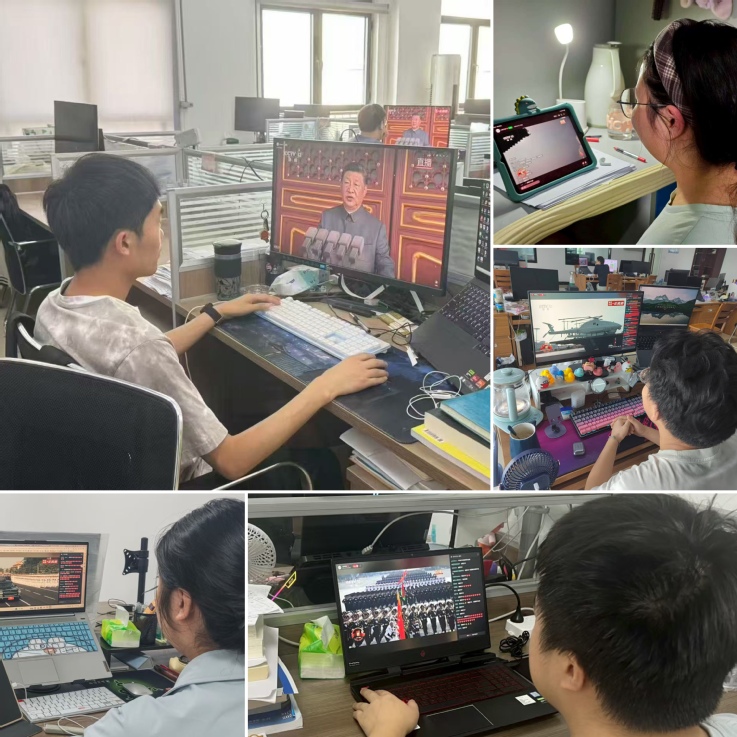 观看结束后,党支部组织了线上交流讨论。同志们踊跃发言,分享自己的感悟与收获。张瑾言表示:“通过观看阅兵,我更加深刻地认识到我们今天的和平生活来之不易。作为青年党员,我们要铭记历史,以先烈们为榜样,好好学习,将来为祖国建设贡献自己的力量。”孟言提到:“这次阅兵展示了我军装备体系建设最新成果,体现了我国武器装备自主创新能力,让我倍感自豪。我们要珍惜先辈们用鲜血换来的和平环境,努力学习和工作。”积极的交流讨论让研究生党员们更加深刻领悟了九三阅兵是为了纪念中国人民抗日战争暨世界反法西斯战争胜利80周年而举行的盛大活动,它不仅向世界展示中国强大的国防实力和维护世界和平的决心,更让我们铭记历史、珍爱和平。