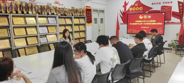 本网讯 为锚定新学期学生工作方向,加强学生组织核心团队建设,9月7日下午,土木学院第51届团委学生会第一次主席团会议暨部长竞聘会在徽匠楼306会议室举行。学院团委相关负责人,第51届团委学生会主席团全体成员出席会议,部长竞聘候选人参加竞聘会。