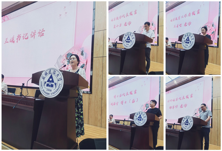 表彰的优秀教师康小方、优秀教育工作者王月竹、博士后代表刘薛宁、科研优秀代表柳军修依次发言,结合各自岗位实际,分享了在教学育人、科学研究与学生工作中的生动实践和深刻体会。他们以真挚而平实的语言,表达了对教育事业始终如一的热爱与坚守,以及对学子们成长成才的深切关怀与悉心引导。