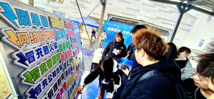 本网讯 为进一步加强反诈防骗宣传力度,不断提高广大师生防诈骗能力,以全方位、多层次、多形式为特点帮助学生学习反诈的相关技巧,提升反诈意识,近日,学校保卫处、学工部、研工部联合中国银行合肥分行在南校区组织开展防范电信网络诈骗体验活动,学校六百多名师生员工参加。