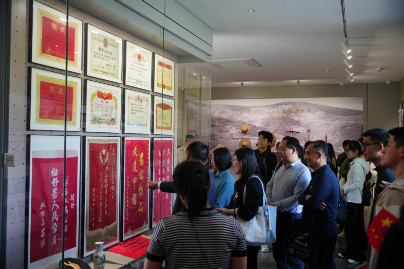 不知不觉间,师生党员沉浸在那似火年代的红色记忆中,沿着百年党史长廊,重温了中国共产党人用智慧和生命开天辟地、救亡兴国、继往开来、民族复兴的光辉历程;师生党员走过新华台,瞻仰精神堡垒五角星,接受深刻的精神洗礼;拾级而上,一行人沿着登山步道抵达青岗岭上的“九·一六”茶园,三月的茶园茶树郁郁葱葱、茶香怡人,台阶旁的映山红、杜鹃花争奇斗艳。身处茶园中大家无不为舒茶人民愚公移山般的钢铁毅力、敢为人先的拼搏精神和锐意进取的创业精神所折服,党员同志们深刻体会到将党旗插到茶垅间的深刻内涵,以亲身实践感悟党史光辉。