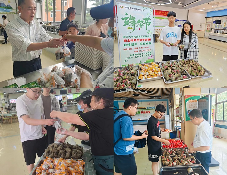 67日和10日,学校食堂分别开展全荤菜半价让利活动和免费送粽子、咸鸭蛋活动。各食堂将已经煮熟的粽子和咸鸭蛋,作为节日的温暖和祝福,赠送给广大师生。同学们纷纷品尝着手中美食,分享着节日的喜悦。(作者:程少聪;审稿:陈雷)