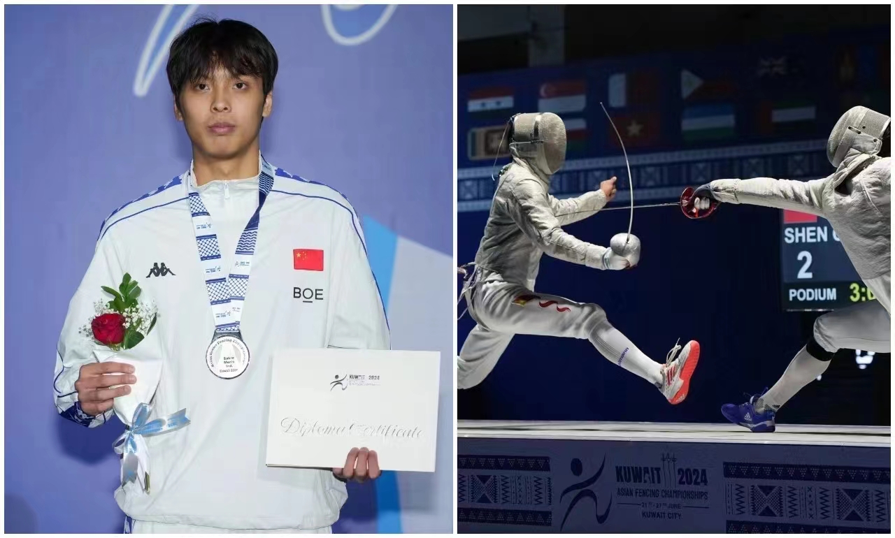 在首日进行的男子佩剑个人赛中,沈晨鹏同学以小组赛第一的成绩首轮轮空直接进入32强,随后他战胜队友代锐及乌兹别克斯坦、伊朗、科威特选手,与韩国运动员Oh Sanguk展开金牌角逐,面对强悍的对手沈晨鹏没有轻言放弃,在对攻中耐心寻找机会接连追分,最终沈晨鹏9-15不敌对手,收获个人银牌,同时刷新了自己在国际赛事中取得的个人最好成绩。