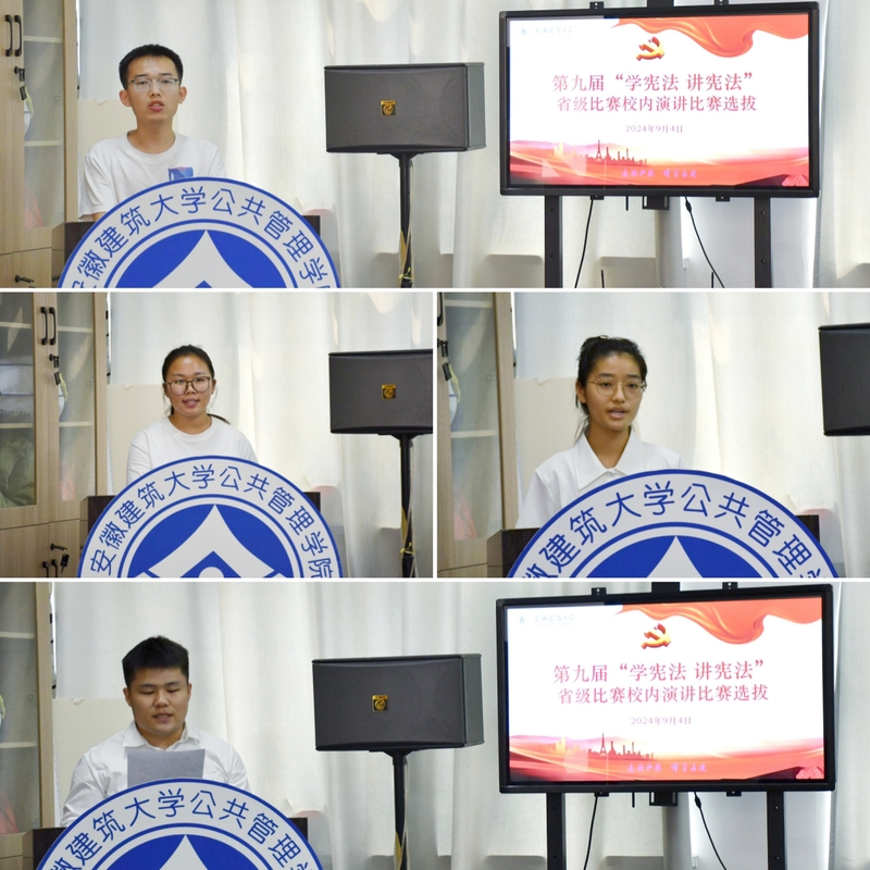 本次“学宪法 讲宪法”系列选拔赛分“法治素养竞赛”和“演讲比赛”两个部分,其中,法治素养竞赛为闭卷测试,包括单选、多选、名词解释、简答等题型。演讲比赛中,选手们围绕“学宪法 讲宪法”主题,紧扣法治主题,结合时政热点,选取身边典型案例,或讲宪法故事,或谈宪法认识,或论宪法精神,用生动的语言和鲜活的例子,将宪法精神传递给在场的每一位师生,充分表达了自身对宪法的理解和感悟,诠释全民“尊法、学法、守法、用法”的重要性。
