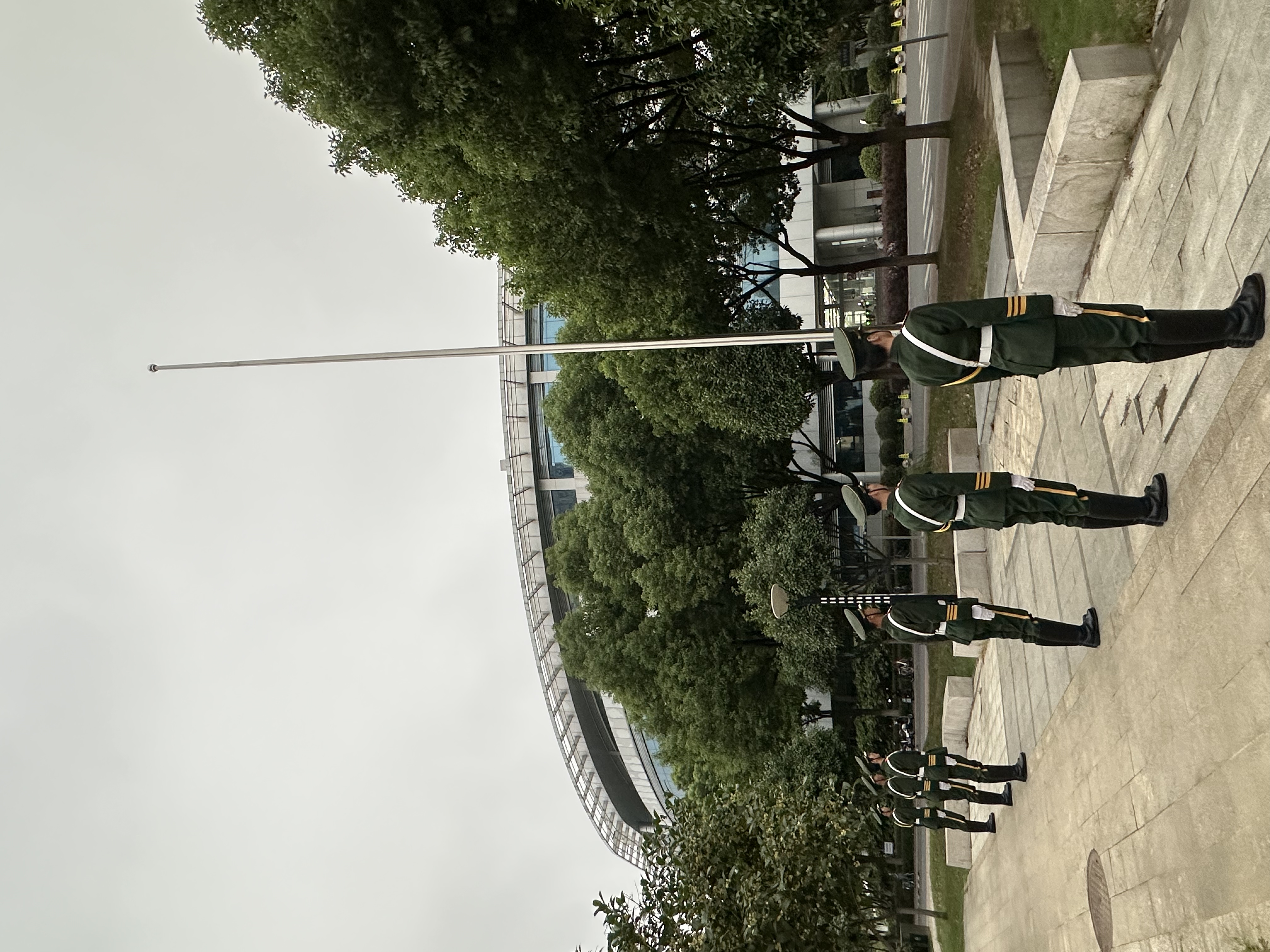 上午6点40分,迎着熹微的晨光,国旗护卫队迈着整齐矫健的步伐,昂首阔步向前。师生们早早齐聚旗台前,怀着崇敬与期待的心情,共同见证这一庄严而神圣的时刻。仪式伊始,全体师生肃立,目光坚定地注视着前方,鲜艳的五星红旗伴随着雄壮的国歌冉冉升起,迎风飘扬。每个人心中充满了无比的自豪与深深的敬意,在这个特别的日子里,我们衷心祝愿伟大的祖国繁荣昌盛,国泰民安。