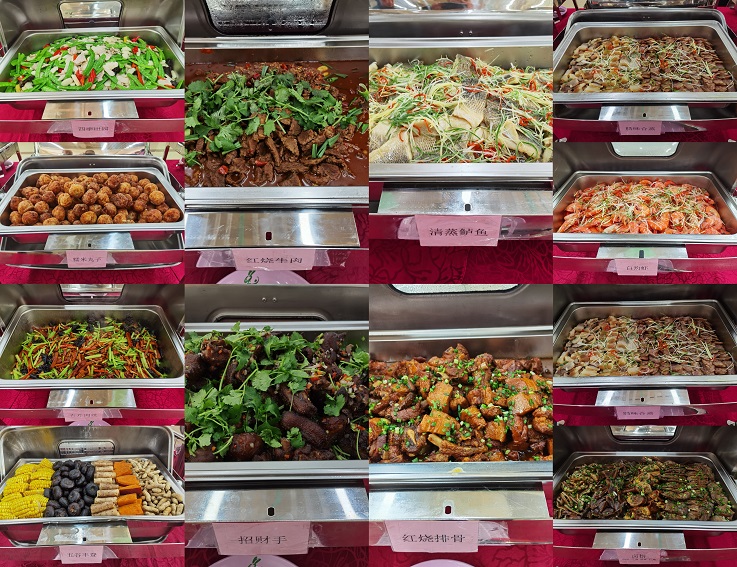就餐大厅内张灯结彩、喜气洋洋。饭桌上,红烧牛肉、白灼大虾、清蒸鲈鱼、红烧排骨、糯米丸子、椒盐猪手、香芹肉丝、小炒牛肝菌、五谷丰登......一道道美食年味十足,让假期留守值班人员和留学生们感受到学校的温馨与关怀。大家兴高采烈,边吃边聊,互致新春祝福,现场欢声笑语,其乐融融。(作者:程少聪;一审:陈委婕 二审:韩小霞 三审:唐黎)