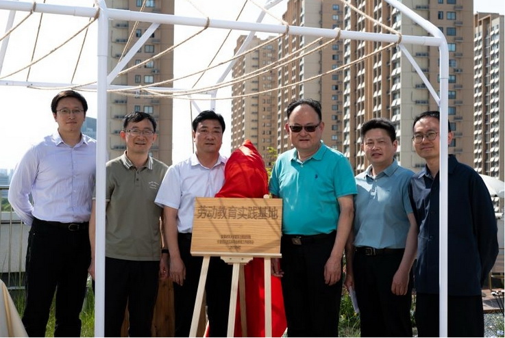 校党委常委、副校长李早实地参观了“疗愈花园”营造成果,详细了解学生团队在方案创作、装置搭建、维护管理等环节的实践细节,并指出要持续整合相关资源,将屋顶花园打造为“劳动育人+生态低碳”的示范场景。党委学生工作部、后勤管理处负责人共同为劳动教育实践基地揭牌。