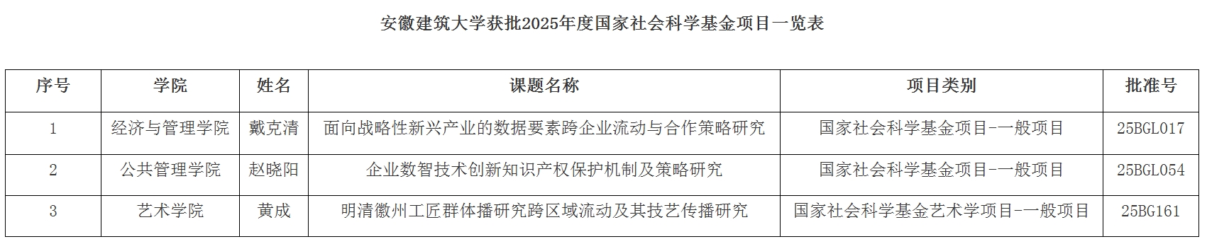 本网讯 近日,全国哲学社会科学工作办公室公布了年度国家社科基金年度项目立项结果,学校获批一般项目三项。