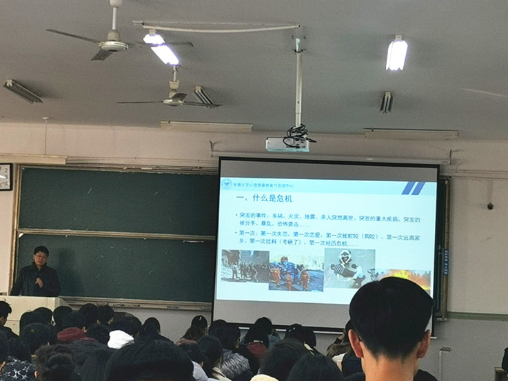 培训中,安徽大学心理健康教育与咨询中心蒋善老师就“大学生心理危机识别与干预”为同学们做专题讲座。他介绍了抑郁症、双向情感障碍、精神分裂症、人格障碍的识别技巧,通过分析案例,针对如何进行心理危机识别与干预提出了意见和建议,呼吁同学们要重视心理健康,学会倾听,掌握共情,悦纳自己,善待他人。