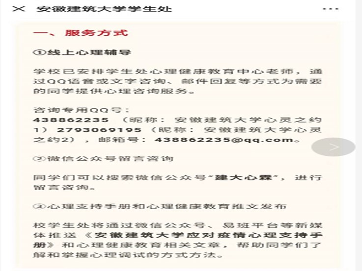 学校发布的心理支持手册内容丰富、措施科学,涵盖了防护知识、自我调节、应对策略和寻求专业帮助四个方面,公布了各省市和直辖市的心理热线电话,方便师生接受专业权威的心理咨询服务。相信心理支持手册的发布必将帮助建大师生在疫情防控时期更好的接纳自己的负面情绪,主动寻求帮助,做好自身的心理健康防护工作。