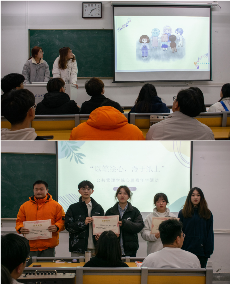 12月10日,公管学院于北区F楼110举办“以笔绘心,漫于纸上”连环画比赛。本次比赛由参赛选手展示自绘连环画,讲述相关故事及其中寓意和启发,向观众呈现了漫画作品中丰富的创意灵感和心灵启迪。一幅幅生动有趣的绘画将大家带入故事世界,在一段段感悟中获得心灵的成长与洗涤。《好学不倦》《今夕何夕》《绿色的梦》等作品中我们认识到学无止境、活出风采、珍惜当下以及保护生态环境的重要性;《陪伴》《长大》《此花开尽更无花》中我们感受到陪伴的温暖、爱情的纯真以及生命的伟大。经过激烈的角逐,胡玉龙、钟莹凭借在《今夕何夕》中真情流露的讲述、舒缓的背景音乐及优秀的绘画功底荣获一等奖。