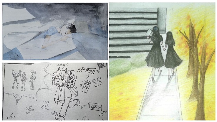 线下实践活动,促进育人成效。3月19日,学院组织开展心理微漫画活动,活动前期学院在QQ空间和QQ群进行线上宣传,采取线下提交作品的方式,同学积极参与,提交了多份优秀作品,表现了同学们在大学生活中常见的心理困惑和心灵成长,涵盖学习、社交、家庭等多个方面。例如21级何琪和丁子阳同学的作品《人生逐梦正当时》展现出当代大学生对于未来自身发展的思考和规划,其中不乏心理上的挣扎;20级臧子杰,沈隆怀和许雨佳同学的作品《归途繁花》表现了大学生与家人之间存在的误会,并最终解决的故事。