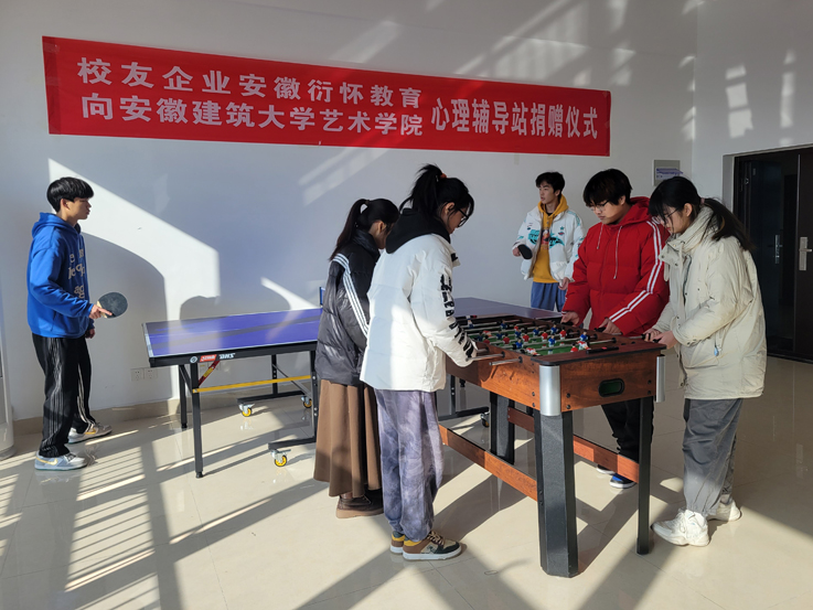 本网讯 1228日下午,艺术学院2017届环境设计专业毕业生杨璐代表安徽衍怀教育咨询有限公司,向艺术学院心理辅导站捐赠兵乓球桌和足球桌游台。副院长邢瑜、党委副书记潘青以及辅导员、学生代表等出席捐赠仪式。