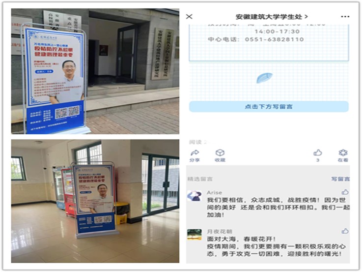 为取得良好的课堂效果,事前对活动进行了广泛宣传,在教学楼、宿舍楼等醒目位置张贴活动海报,校园网、微信公众号、易班今日校园等平台开展了“万名师生同上一堂心理课”精选留言有奖征集活动,师生可以围绕疫情防控期间的心理健康某一主题留言,提出意见和建议。