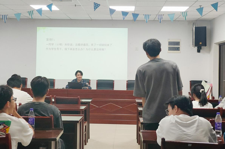 接下来,丁媛媛重点介绍了学生骨干在心理危机干预中的角色和职责,并分享了一些实用的干预策略和沟通技巧,帮助心理委员们更好地应对实际工作中的挑战。通过多个真实案例,展示了不同情境下学生骨干如何有效应对心理危机。并邀请现场的心理委员们参与案例交流,鼓励他们分享自己的见解和困惑。通过互动讨论,心理委员们加深了对心理危机干预的深层理解。