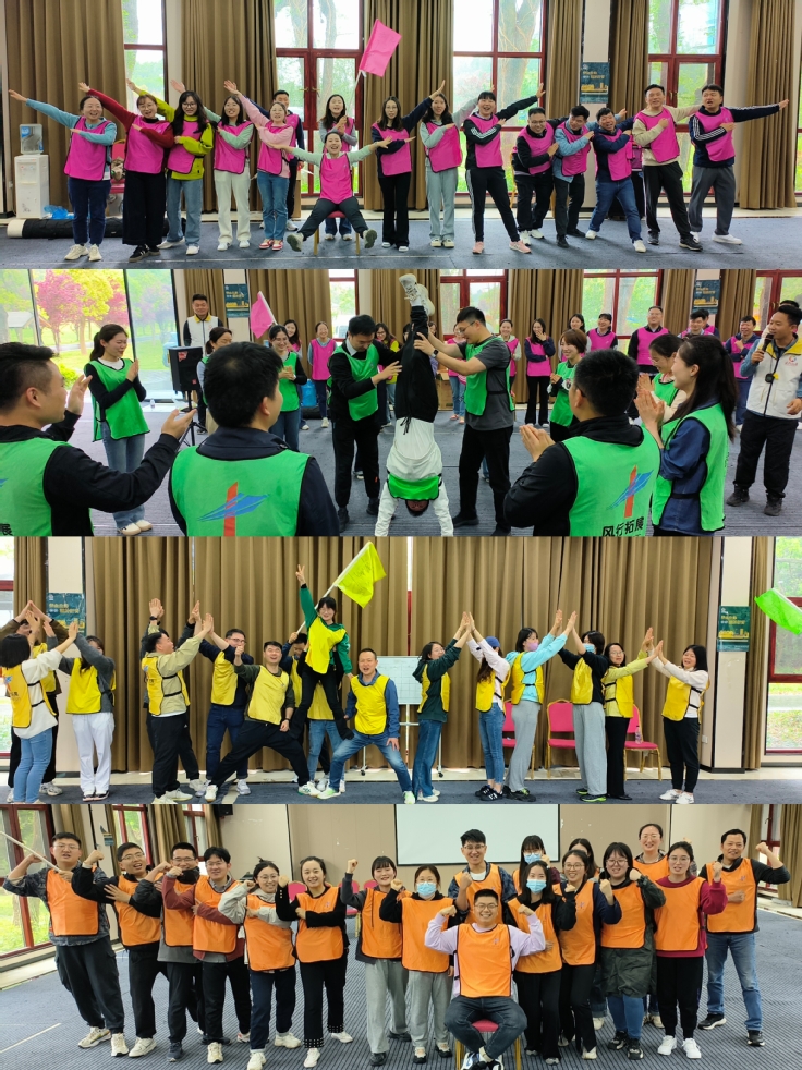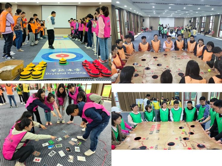素质拓展活动中,在教练的带领下,进行了破冰游戏和分组,四支队伍分别展现出了自己的创意与风采。“旱地冰壶”、“重走长征路”和“急速60秒”游戏中,各团队齐心谋划,合理分工,顺利完成了这三个游戏的PK,提高了团队成员快速判断力和协作能力。“动力圈”游戏用一种特别的方式让大家深切体会到了“团结就是力量”,培养了团队克服困难的毅力和勇于突破的决心。